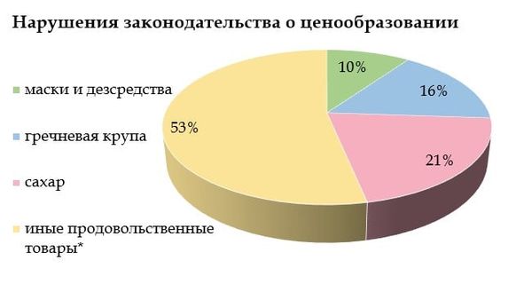 Больше всего факто завышения цен касались сахара, гречки, защитных масок и дезинфицирующих средств.