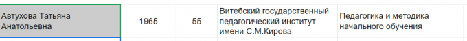 Первый раз нам повезло. Проверяем второго педагога по алфавиту: