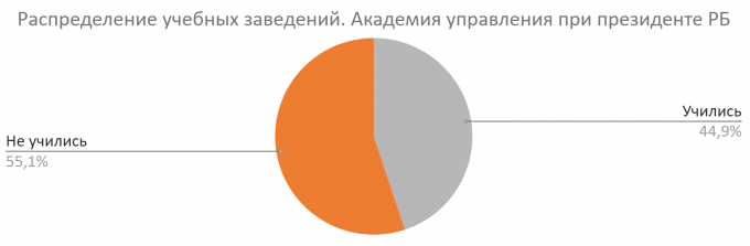 Еще одна интересная закономерность (уже по всему изначальному списку, а не только по палате представителей), это процент людей, закончивших Академию управления при президенте: