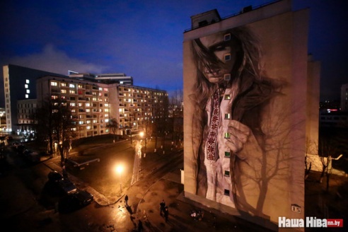 Огромный портрет белорусской девушки в вышиванке появился на здании общежития в Минске