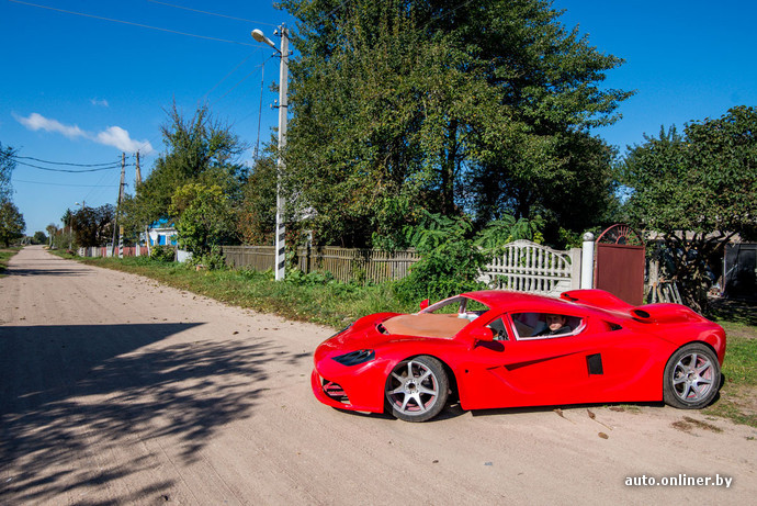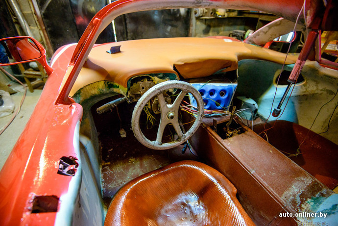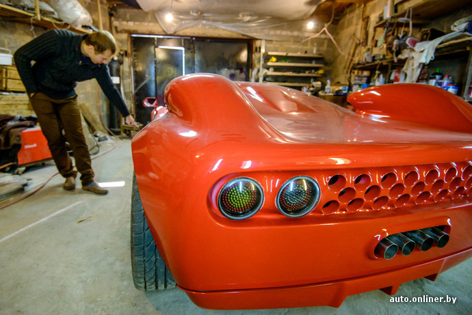 Соединение кузова и шасси было завершено лишь несколько месяцев назад, так как заниматься машиной приходилось в свободное от работы и семьи время. На данный момент также закончил прокладку проводки и установку двигателя, а также сделал подложку для сидений. Сейчас автомобиль на полном ходу. Дело осталось за малым — отделать салон, установить приборную панель и обшить кресла, а также закрепить ремни безопасности. Ну а потом уже, скорее всего, придется дополнительно приварить на днище защиту, чтобы машина была точно готова ко всем особенностям белорусских дорог вроде „лежачих полицейских“, ям и выбоин. И, конечно, будет несколько мелких доработок, связанных с предстоящими тестами для постановки на учет.