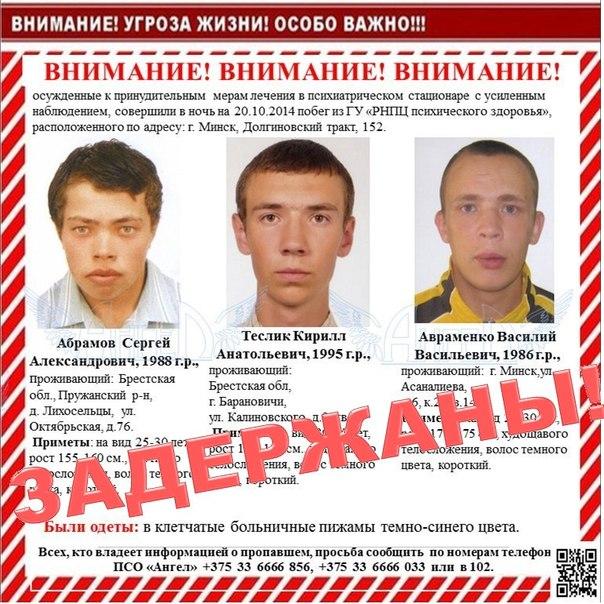 Напомним, что в ночь на 20 октября из психиатрического стационара с усиленным наблюдением сбежали трое пациентов, осужденных к принудительным мерам лечения. Один из них проживал ранее в Барановичах.
