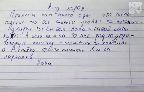 Новый год все ближе, а значит, все больше писем отправляется Деду Морозу. Трогательные каракули на листочках в клеточку, ровные буквы на аккуратных страничках… Главное в них – вера в чудеса. Детские письма главному волшебнику собрал сайт kp.by.
