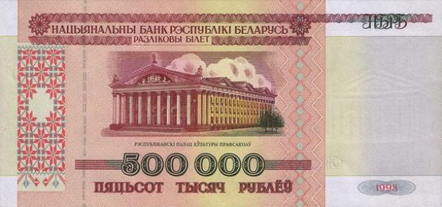 Ослабление белорусского рубля по отношению к доллару и евро затронуло вопрос о вводе в обращение новых денежных купюр большего достоинства. Введение в Беларуси в денежный оборот 500-тысячной купюры находится в стадии проработки, сообщили БЕЛТА в Нацбанке. – Введение нового номинала банкнот находится в стадии проработки. Решение об изменении в наличном денежном обращении Беларуси будет приниматься исходя из ситуации, складывающейся в экономике, о чем Национальный банк заблаговременно проинформирует всех заинтересованных, – отметили в Нацбанке. Белорусы уже знакомы с 500-тысячной банкнотой. 1 декабря 1998 г. такая купюра была введена в обращение. Изъяли ее в связи с деноминацией 1 января 2001 года.