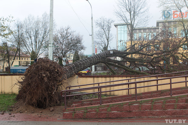 13 апреля в Бресте не на шутку разгулялась стихия. По данным облгидромета, местами скорость ветра достигала 20 м/с.