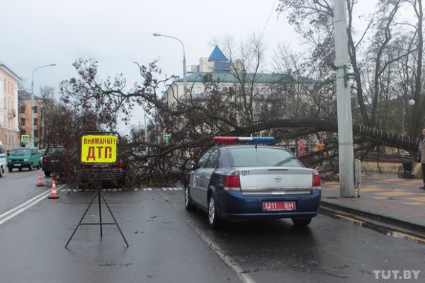 За день спасателям поступило около 100 сообщений о повреждениях, причиной которым стал штормовой ветер, пишет tut.by.