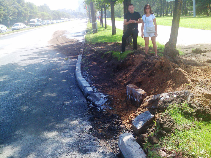 По его словам, после прохода военной колонны прибежали люди, насколько возможно поставили бордюры и закопали ямы.