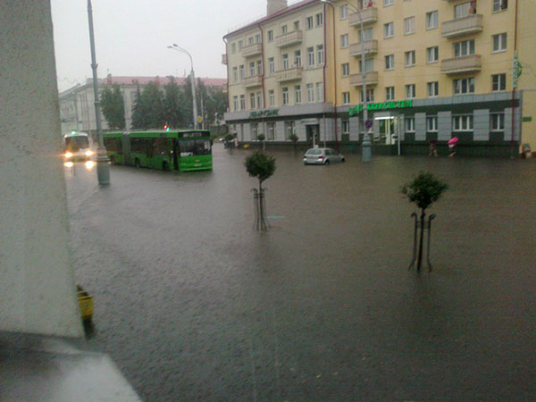 "Затоплено кольцо в районе завода торгового оборудования, Полесский мост и кусок Советской от цирка до площади Ленина. В районе Интернациональной и Зипа затоплены автобусы. МЧС эвакуирует пассажиров", - пишут очевидцы.