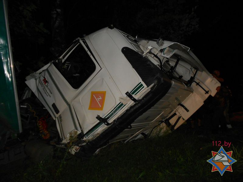 Прибывшие на место ДТП сотрудники МЧС при помощи гидравлического инструмента спасли водителя (гражданина Польши 1963 г.р.). С предварительным диагнозом «перелом костей таза, черепно-мозговая травма, ушиб внутренних органов» его доставили в Рогачевскую больницу.