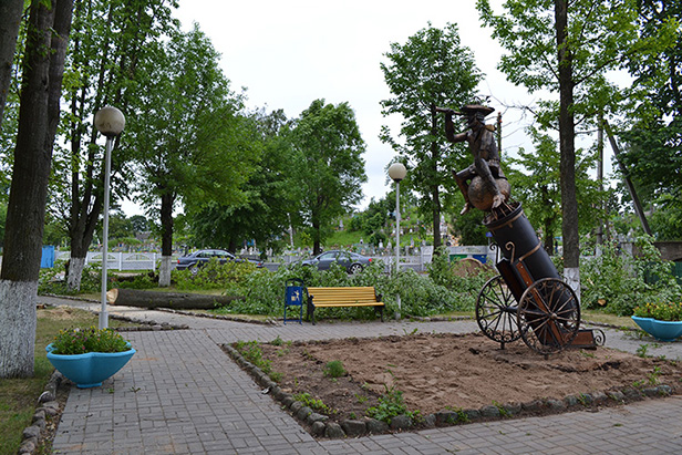 Вакол скульптуры Мюнхаўзена спілавалі дрэвы