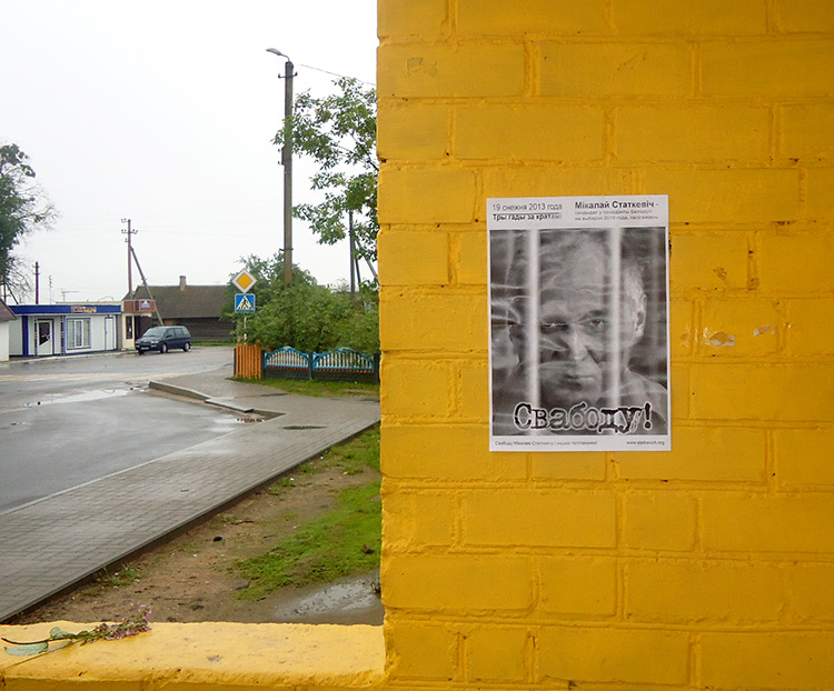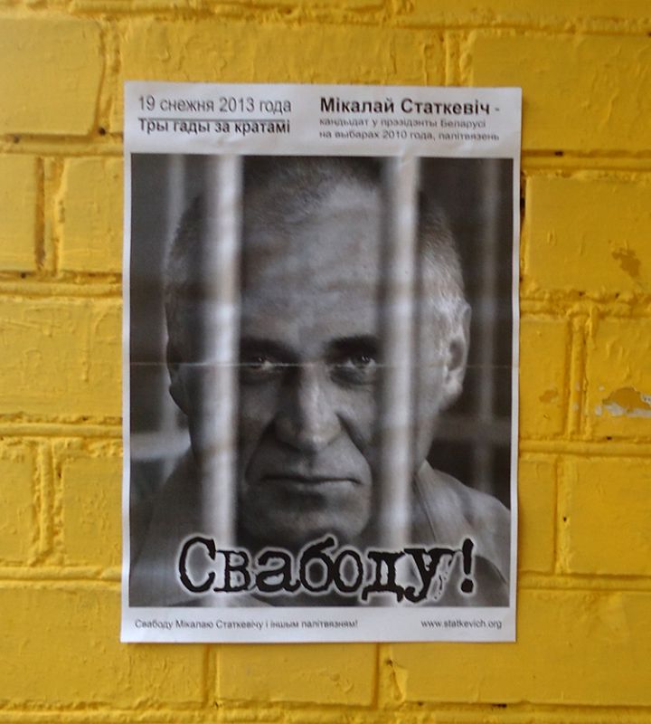 Плакат, з патрабаваннем свабоды былому кандыдату ў прэзідэнты Мікалаю Статкевічу, можна было пабачыць на аўтобусным прыпынку ў раёне МКК. Па словах відавочцаў, правісёў ён там нядоўга, толькі некалькі гадзінаў.