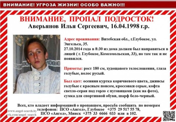 Утром 27 октября Илья Аверьянов вышел из дома, чтобы пойти на занятия в лицей, но в учебном заведении юноша так и не появился.