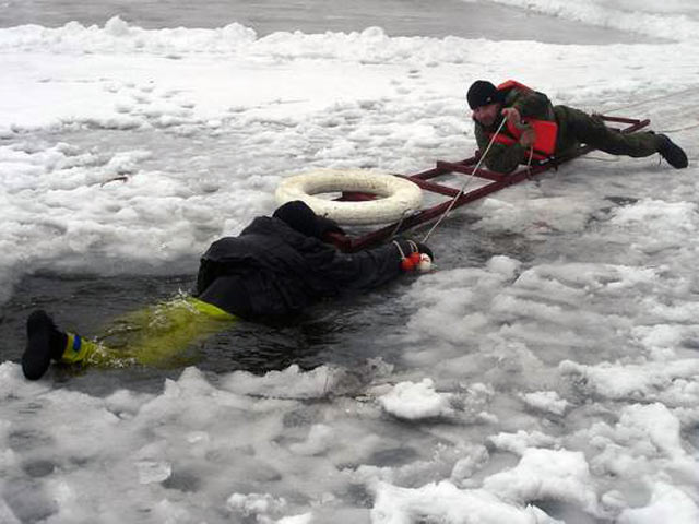 По прибытии в 17.55 к месту вызова спасатели установили, что в полынье площадью 2 кв. м на поверхности воды на расстоянии около 20 м от берега находится человек.