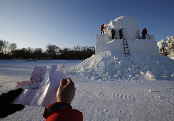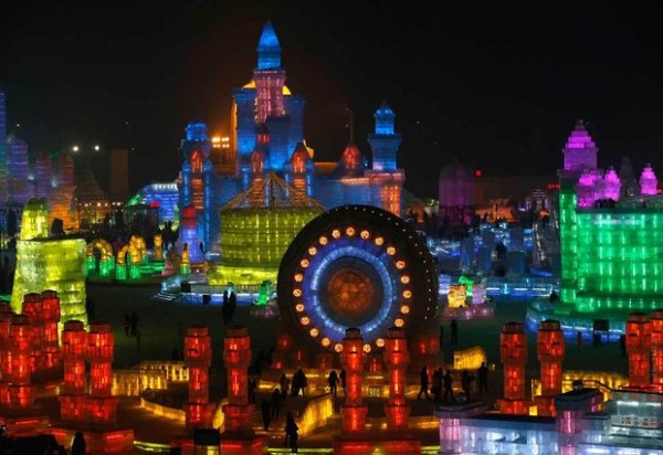 В этом году 7 000 мастеров из более 113 000 кубических метров льда создали масштабные скульптуры и целые города на площади 600 000 кв м.