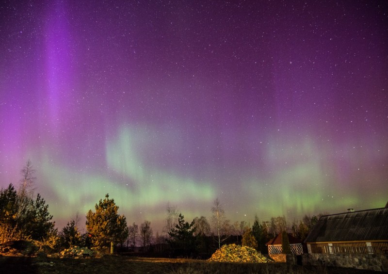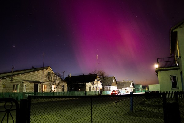 Северное сияние в Браславе. Фото Тимофея Петрашкевича с его личной страницы ВКонтакте