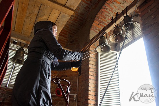 На колокольне собора Рождества Пресвятой Богородицы во время экскурсии «Христианские храмы Глубокого» 18 апреля. Фото Маргариты Юрик