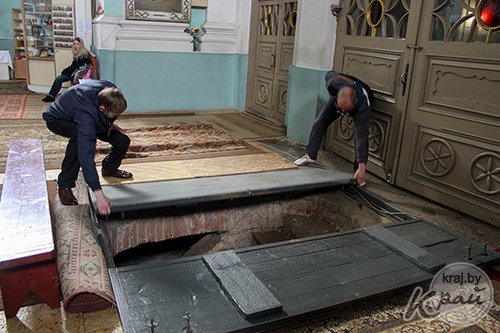 Затем все присутствующие спустились в подземелье, где Юрий Колбасич вспомнил многие факты о его существовании. Считается, что по туннелю под землей можно было попасть в Березвечье. Экскурсовод показывал различные вещи, найденные при раскопках: посуду, патроны, часть револьвера.