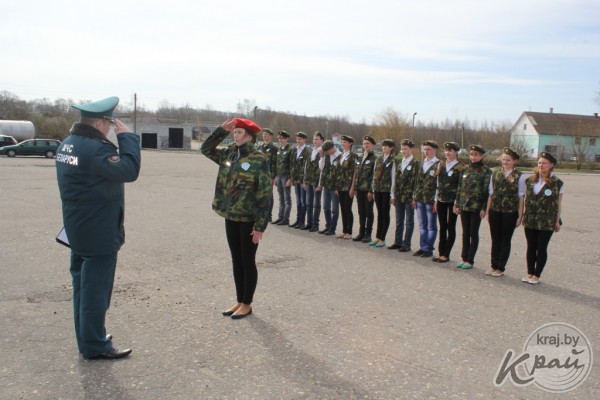 Валерия Курилович из Постав – лучший командир первого зонального тура областного слета клубов юных спасателей-пожарных. Глубокое, 23 апреля. Фото предоставлено Край.бай Глубокским РОЧС
