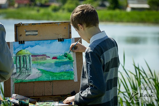 Учащиеся художественной школы имени Язепа Дроздовича в Глубоком 5 июня рисовали пейзажи. Фото Маргариты Юрик