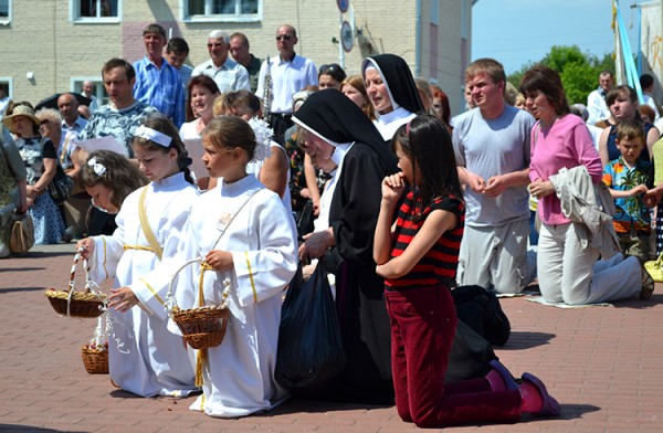Развітанне са святарамі, якія служылі ў касцёле Святой Тройцы, адбылося ў Глыбокім. Перад гэтым прайшла імша, на якой маліліся за еднасць парафіі, а потым адбылася Працэсія Божага Цела. У ёй прынялі ўдзел жыхары горада і раёна, а ўзначаліў – біскуп Віцебскай дыяцэзіі Алег Буткевіч.