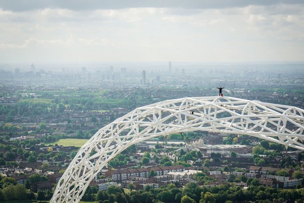 Британский каскадер стал первым человеком, который взобрался на 130-метровую арку стадиона Уэмбли. Фото с сайта news.tut.by