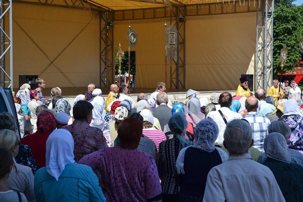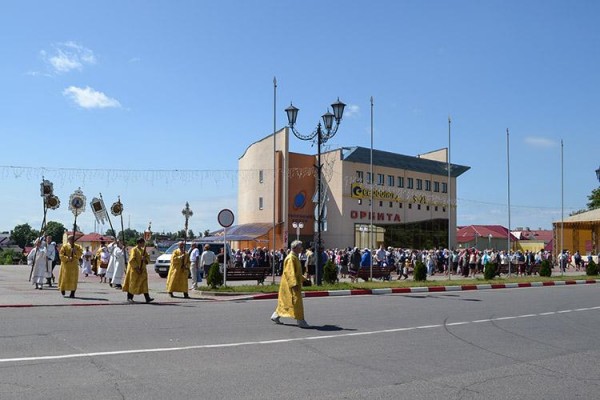 В Глубоком крест встретили 14 июня в 15.00, а проводили 15 июня, когда на Центральной площади города состоялся молебен, и священники, сопровождающие реликвию, благословили город, сообщают «Весткі».