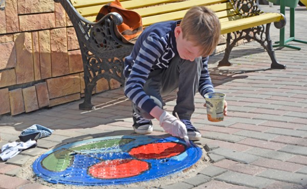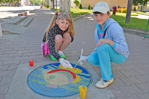 Самые лучшие идеи приняты к исполнению. 8 июня воспитанники Глубокской детской художественной школы им. Я. Дроздовича и работники Глубокского дома ремесел раскрасили канализационные люки. Их превратили в божьих коровок, рыбок, клоунов, мультипликационных героев. Украсили улицы, конечно же, и бренды Глуботчины – вишенки и даже банки сгущенки.