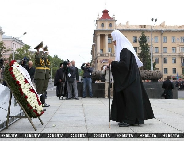 20 июня Святейший Патриарх Московский и всея Руси Кирилл возложил венок к монументу Победы в Минске.