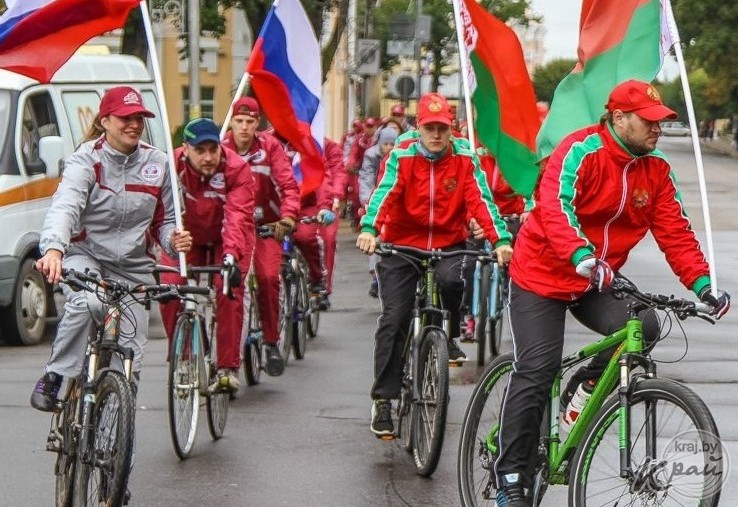 – В велопробеге участвовали 30 молодых людей из Москвы, Пскова, Тулы и Смоленска Российской Федерации и 30 юношей и девушек из белорусских городов Витебска, Орши и Глубокого. Стартовав 19 сентября в Смоленске, они проехали через российские города Ельню, Рославль и Клинцы. Потом – через белорусские Могилев, Оршу, Витебск, Полоцк и Глубокое.