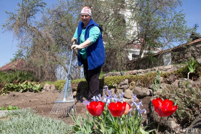 Сейчас Мария и другие работницы заняты разбивкой цветников.