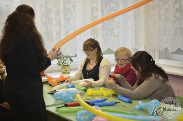 С 3 по 18 ноября девушки знакомились с работой школ и дошкольных учреждений, больницы и приюта, территориального центра социального обслуживания «Криница». 5 ноября они побывали в Глубокском центре детей и молодежи. Руководитель кружка «Аэродизайн» Светлана Вартанян учила француженок искусству шарового дизайна. Девушки – ученицы способные: они и роз из шаров наделали, и всяких смешных зверюшек.