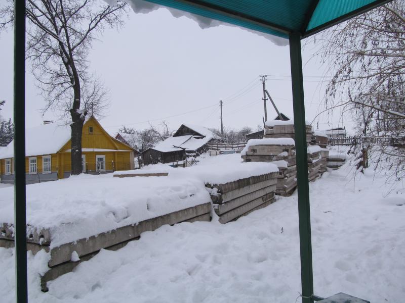 З дугога боку - пліты перакрыцця. Складзеныя прыступкамі. На снезе - дзіцячыя сляды. Штораз у чаканні аўтобуса школьнікі выпрабоўваюць сваю смеласць і лёс...