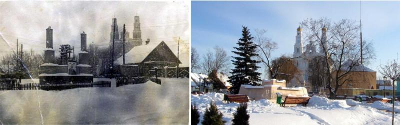Здымкі зробленыя з прыблізнай розніцай ў 80 год. Патрапіць на старае месца, дзе стаяў фатограф, не атрымаецца. Там, дзе за польскім часам ішла вуліца Кармеліцкая, - бетонны плот кансервавага завода. Ямы ад капаніц, вялізныя дрэвы - шмат што захавалася. Але ці стала гэта маляўнічае ў мінулым месца прыгажэйшым. Тут ёсць над чым задумацца.