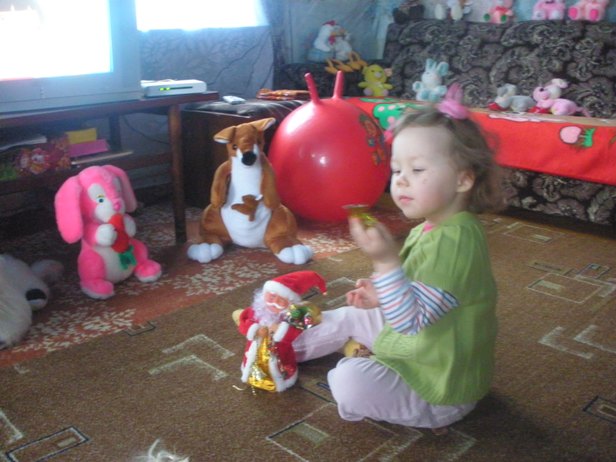 Улляна Зялёнка з гуляецца з новымі цацкамі. Фота Змітра Лупача.
