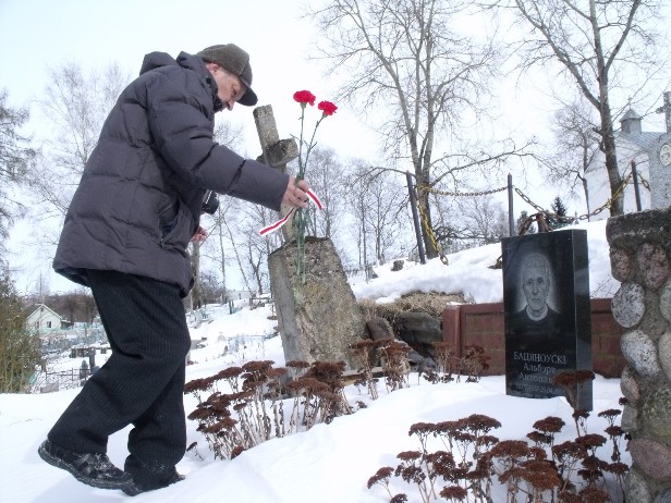 Некалькі ўдзельнікаў акцыі завіталі потым на могілкі Копцеўка, і паклалі кветкі на магілу Альберта Бацяноўскага, сябра Саюза беларускіх патрыётаў, які за беларускую справу сядзеў у ГУЛАГу. Там памаліліся за супакой душаў дзеячаў нацыяльнага руху, якія адыйшлі ў лепшы свет.