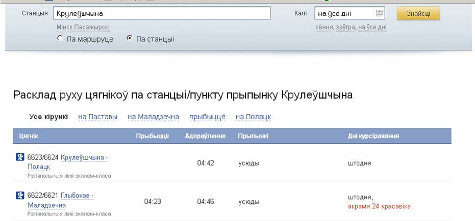 Упершыню Беларуская чыгунка адыйшла ад гэтай практыкі - у раскладзе прыгарадных цягнікоў (рэгіянальныя лініі эканом-класа) напісана "Крулеўшчына", Палевачы", "Шаркаўшчына".