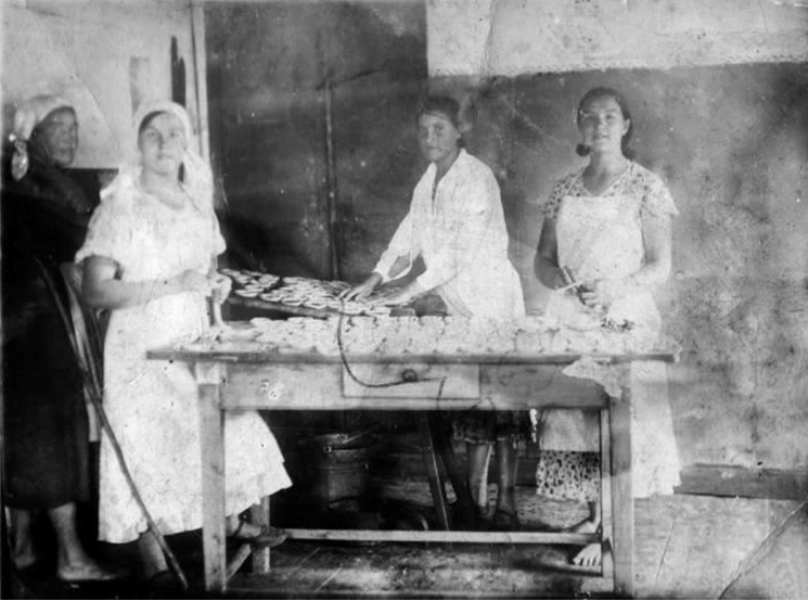 На здымку, злева направа: маці - Алена Альхімовіч, дочкі Яўгенія, Валянціна, Ірына. Смаргонь, 1930-я гады.