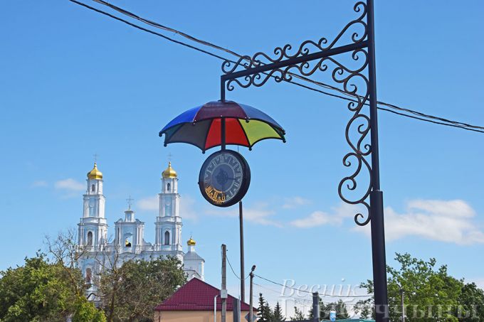 Хотите узнать больше? Первые уличные часы появились в Глубоком на площади 17 Сентября. Фото с сайта vg-gazeta.by Часы под радужным зонтиком установили на автобусной