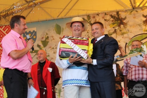 Хотите узнать больше? Гран-при конкурса баянистов «А гармонік грае, грае» в Глубоком выиграл Юрий Стрельченко. Баян ему вручил председатель райисполкома Олег Морхат. Фото