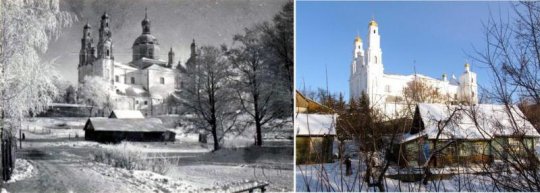Хотите узнать больше? Здымкі зробленыя з прыблізнай розніцай ў 80 год. Патрапіць на старае месца, дзе стаяў фатограф, не атрымаецца. Там, дзе за польскім часам ішла вуліца