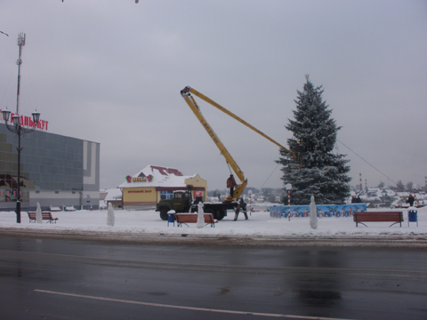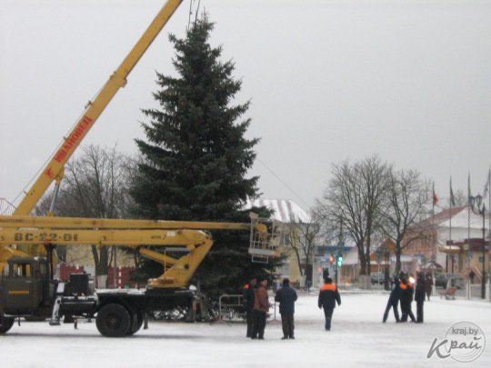 ФОТОФАКТ: в Глубоком работники комхоза 6 декабря устанавливали елку
