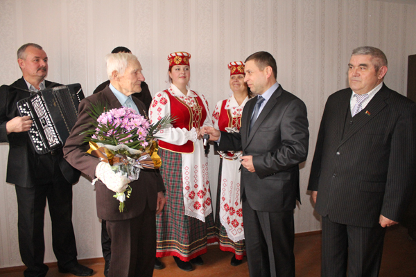 На учет нуждающихся в улучшении жилищных условий в отделе жилищно-коммунального хозяйства райисполкома ветеран войны был поставлен в декабре 2012-го. И. А. Лавринович пожелал пенсионеру благополучия, крепкого здоровья и только приятных хлопот, связанных с заселением в новое жильё. Музыкальные поздравления прозвучали в адрес новосела от фольклорного коллектива «Медуница» ДК «Адаменки».