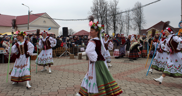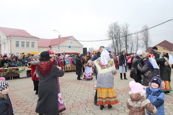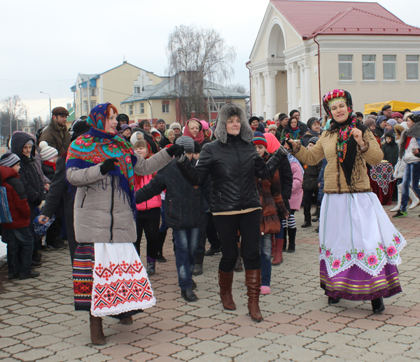 На святочнай пляцоўцы дзеці і дарослыя аб’ядналіся ў вяселым танцы кракавяк. Планавалася, што затанчыць уся плошча. Магчыма, на гэты раз не атрымалася. Але ідэя добрая. Так трымаць, культработнікі!
