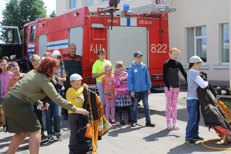 Сотрудники центральной детской библиотеки дали «книжный старт в лето». Пять библиороллеров (мальчики и девочки с надписями на футболках и кепках «Лето с книгой!») раздавали детям и их мамам листовки с рекламной информацией о детской районной библиотеке. Активисты молодёжной организации спасателей-пожарных приняли участие в республиканской акции «Не оставляйте детей одних». Они прикрепляли на одежду малышей эмблему акции, напоминая родителям о том, что дети не должны оставаться без присмотра, особенно в летний период. Возле пожарной машины выстроилась целая очередь мальчиков и девочек. Инспектор группы пропаганды и обучения РОЧС Н. В. Туркова провела развлекательную эстафету, где нужно было в настоящей боевой одежде пожарного «спасти» игрушку, и конкурс рисунков «Безопасное лето».