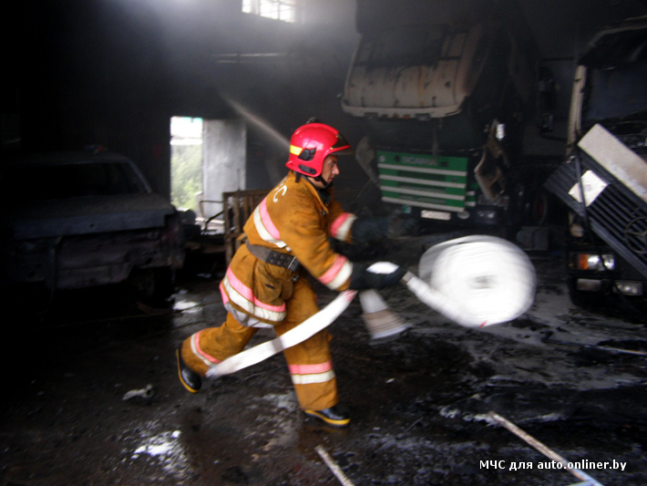 Вчера в МЧС позвонил очевидец: горит ангар! Это произошло в Лиозно (Витебская область). На место ЧП выехали пожарные. Через десять минут после звонка возгорание было локализовано, еще через девять — полностью потушено. Огнем повреждены два грузовых автомобиля — Mercedes и Scania, находившиеся в ангаре.