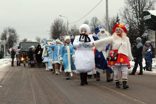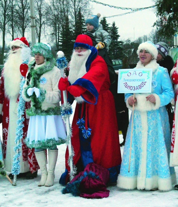 Окунуться в атмосферу приближающихся праздников помог традиционный парад Дедов Морозов и Снегурочек, который прошёл во всех городах страны. Не стал исключением и наш горпосёлок. В среду, 24 декабря, более 70 сказочных героев в праздничной колонне прошлись от «Беларусбанка» до центральной площади. К тому, что обязательно накануне новогодних праздников пройдёт этот парад-конкурс, лиозненцы уже привыкли. В трудовых коллективах к событию готовились заранее. Кто конкурсную программу репетировал, а кто закупал новые костюмы. Так, например, в обновках вышли Дед Мороз и Снегурочка из УЗ «Лиозненская ЦРБ». Облачились в костюмы главных персонажей новогодних торжеств также работники культуры, РУП «Лиозненская хлебная база», райпо, ОАО «Лиозненский льнозавод», педагоги. На центральной площади зрителей поприветствовали главные Дед Мороз и Снегурочка, символ наступающего года – Коза и уходящего – Лошадь. Под песни и хороводы заблестела яркими огнями зелёная красавица.