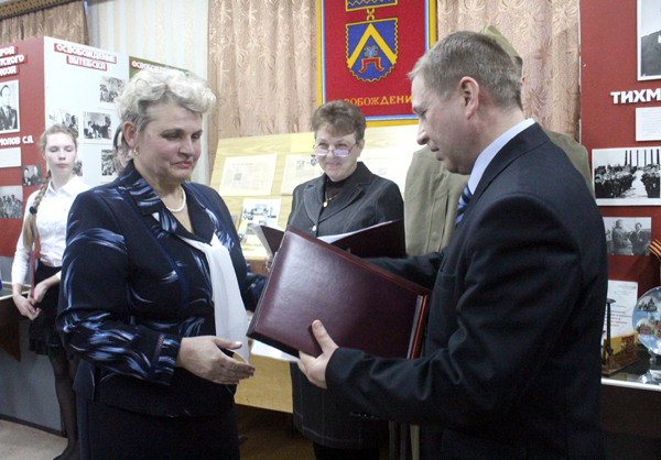 Право вручить решение коллегии Министерства культуры Республики Беларусь о присвоении музею боевой славы статуса народного было предоставлено председателю районного исполнительного комитета И. А. Лавриновичу. Иван Антонович отметил знаковость этого события, сказал слова поздравления как от себя лично, так и от всех жителей Лиозненского района. С особыми словами благодарности обратился к бывшему и нынешнему руководителям музея Г . А. Тимченко и Д. А. Богданович, отметив, что не многие городки и местечки могут похвалиться столь богатой историей. У Бабиновичей имеется даже герб, утверждённый Президентом страны в прошлом году. А этой чести удостоены далеко не все даже более крупные населённые пункты. А дальше звучали поздравления и тёплые слова от начальника отдела образования, спорта и туризма райисполкома Г. А. Асиряна, председателя Бабиновичского сельского Совета О. П. Моржеедовой, которая, обучаясь в местной школе, также была в числе краеведческой группы. По словам Ольги Петровны, проводить в музее время можно было часами, слушая интереснейшие рассказы педагога Галины Александровны. Ею лично было написано не одно письмо, адресованное ветеранам войны. Приходилось принимать целые делегации и проводить экскурсии. Ученики делали это с удовольствием. Поздравили школу также председатель СПУ «Перемонт» Е. М. Красавин, председатель районной организации ОО «Белорусскй союз ветеранов войны в Афганистане» С. А. Апет, председатель районной ветеранской организации В. Г. Москаленко, директора Добромыслинской СШ Л. В. Якубова и Центра детей и молодёжи Е. В. Минакина. Директор районного военно-исторического музея О. Н. Самущенко также обратилась к основателю школьного музея Г. А. Тимченко со словами благодарности за неоценимую помощь при организации в Лиозно экспозиции, посвящённой истории бабиновичского края.На данный момент в школьном музее имеются четыре раздела, в которых размещены 712 экспонатов. Это «Археологический» и «Исторический», где собраны материалы о стоянках первобытных людей и представлены документы Центрального государственного исторического архива Беларуси о первом упоминании о населённом пункте Бабиновичи; «Народные ремёсла», ведь бабиновичские изделия из глины были знамениты ещё до революции даже в самом Петербурге; «Боевой славы» – самый многочисленный и включающий в себя следующие экспозиции – «Бабиновичи в годы Великой Отечественной войны», «Партизанское движение», «Тихмяновская высота», «Боевой путь 99-й ТГАБ», «Операция «Багратион» и другие. В этот же день ученики школы вместе с О. П. Моржеедовой посетили ветеранов войны, вручив им юбилейные медали «К 70-летию Великой Победы». Среди тех, к кому зашли в гости, были малолетние узники нацистских лагерей М. В. Цвиликова из Бабиновичей и И. Ф. Кудрявцев из Осипенок. Юлия ПОХОЛКИНА.