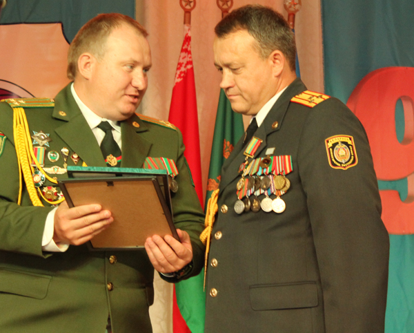 За добросовестное отношение к исполнению служебных обязанностей, высокие показатели в оперативно-служебной деятельности Почётной грамотой Витебского областного исполнительного комитета награждён капитан милиции Д. А. Германов – старший оперативный дежурный оперативно-дежурной службы милиции общественной безопасности. Почетные грамоты УВД Витебского облисполкома получили капитан милиции С. К. Буров – старший госавтоинспектор отделения ГАИ милиции общественной безопасности РОВД и Л. Л. Балаханова – начальник финансовой части РОВД. Благодарность УВД Витебского облисполкома объявлена старшему прапорщику милиции А. В. Козлову – помощнику дежурного оперативно-дежурной службы милиции общественной безопасности РОВД. Нагрудный знак «За самаадданую службу» ІІ степени вручён майору милиции А. П. Князеву – начальнику уголовно-исполнительной инспекции милиции общественной безопасности РОВД, старшему лейтенанту милиции А. О. Масловской – старшему участковому инспектору милиции отделения охраны правопорядка и профилактики милиции общественной безопасности РОВД, сержанту милиции Е. Ю. Михальченко – милиционеру-водителю оперативно-дежурной службы милиции общественной безопасности РОВД. За активную работу, направленную на патриотическое воспитание молодых сотрудников юбилейной медалью «70 лет Победы в Великой Отечественной войне 1941-1945 гг.» награждены М. И. Шашков – председатель первичной ветеранской организации отдела внутренних дел Лиозненского райисполкома и капитан милиции Д. А. Германов. Заместитель начальника отдельной службы активных мероприятий органов пограничной службы Республики Беларусь Ю. Н. Матюкевич приехал на торжественное мероприятие со знаком «За дапамогу органам пагранiчнай службы», который вручил начальнику отдела К. Б. Князеву. На сцену со словами поздравлений и подарками также выходили начальник отдела внутренних дел Сенненского райисполкома полковник милиции М. И. Архипов, начальник Лиозненского РОЧС В. Б. Чайкин (Виталий Борисович вручил награды УМЧС по Витебской области за тесное взаимодействие начальнику ООПП А. М. Рыбакову А.М., начальнику ОУР С. Г. Дементею, участковому инспектору милиции ООПП А. В. Дашкову А.В.), директор ОАО «Лиозненский райагросервис» Д. В. Григорович и начальник отдела образования, спорта и туризма райисполкома Г. А. Асирян. В завершении мероприятия с музыкальным поздравлением выступили участники вокальной студии «Соло»: А. Кудрявцев и дуэт И. Тамкович и А. Чепиковой. А также мини-концерт зрителям представили гости праздника – с оркестр войсковой части г. Полоцка под управлением военного дирижера старшего лейтенанта М. Гаеля. Ксения Деревяга.Написать комментарий