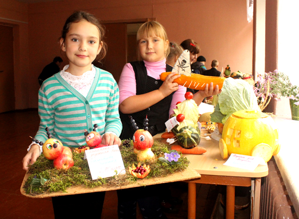 Самая яркая, красочная и вкусная выставка изделий из даров природы, которая ежегодно проходит в осенний период в СШ №1 г.п. Лиозно, вновь порадовала как маленьких и юных творцов, так и ее посетителей. В начале октября в холле возле актового зала появились столы, «усыпанные» поделками из огурцов, кабачков, картофеля, морковки под общим названием «Осенний серпантин». Из яблок дети смастерили гусениц, а из баклажанов – сказочных героев. Осенние фантазии, казалось бы, не знали границ. И жюри, возглавила которое заместитель директора по воспитательной работе Р. Н. Хованская, было сложно определить победителя.
