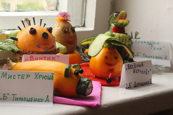 - В этом году мы решили по-другому подойти к оценке ученических работ, – рассказала Раиса Николаевна. – Дипломами отмечены не только ребята, которые проявили себя в творчестве, но и целые классы. Так, в начальной школе первое место занял 1 «Б» класс, который представил на конкурс 15 работ. Среди лучших отмечены поделки Даника Черкасова, Федора Артиховского, Насти Красильщиковой, Ильи Тишаловича, Тимофея Сапишки, Ярослава Деменкова, Виктории Солодковой. Второе место присудили 2 «А» (12 поделок) и 1 «В» (11 поделок). Тройку замкнул 3 «А» класс, представивший на выставке 10 работ. В старшем и среднем звене победителем стал 7 «А». Призерами – 8 «А», 6 «А», 5 «А» классы. Хочу назвать фамилии ребят, которые были нами поощрены. Это Анастасия Дубчинская, Артем Шалупкин, Павел Изобов, Екатерина Кудрявцева, Тимур Сазонов, Кристина Козловская, Вадим Смирнов, Ангелина Едакина, Лада Тишалович, Вадим Безлюдов, Варвара Воробьева, Егор Демидчик, Иван Пашкевич, Юлия Соловьева, Полина Антоненко, Аня Коляденко, Женя Крошкина и Кирилл Тимошкин. Безусловно, огромную поддержку в подготовке выставки-конкурса оказали родители. Без креатива взрослых и детей вряд ли бы мы увидели автомобиль из кабачка, управляют которым пингвины-баклажаны, или Смешариков из свеклы и котят из лука и многое другое. Или огуречного Крокодила Гену, собирающегося в далекое плаванье. На его надежном корабле развеваются паруса из капустных листьев. Несколько дней, пока фруктово-овощные экспонаты располагались в школе, было трудно пройти мимо них без улыбки. Юлия ПОХОЛКИНА.Написать комментарий